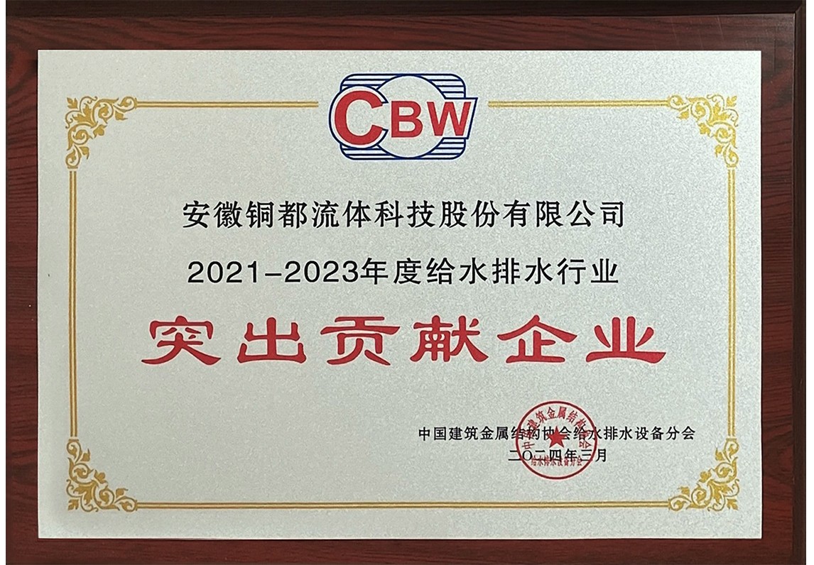 2021-2023年度給水排水行業(yè)突出貢獻企業(yè)