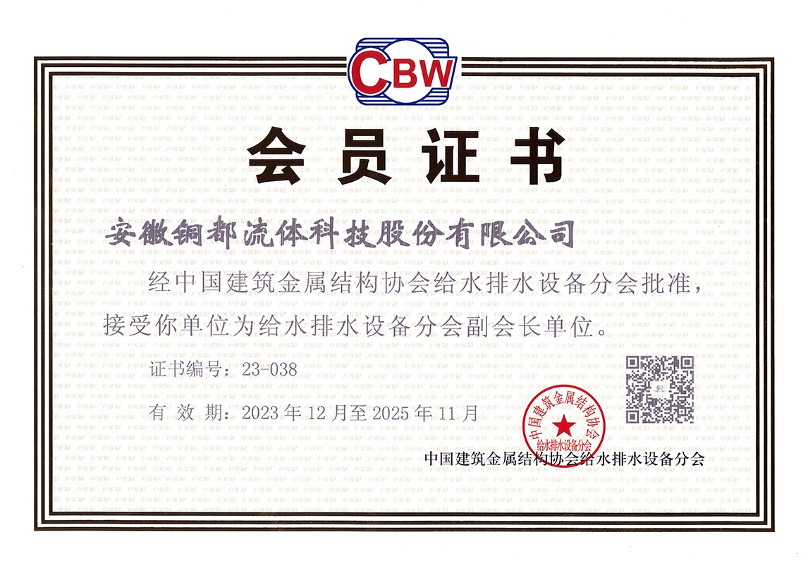 中國建筑金屬結(jié)構(gòu)協(xié)會給水排水設備分會副會長單位