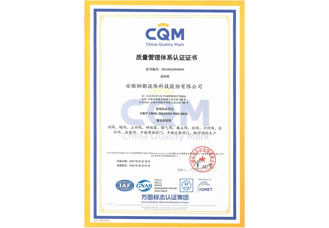 ISO9001質(zhì)量管理體系認(rèn)證證書