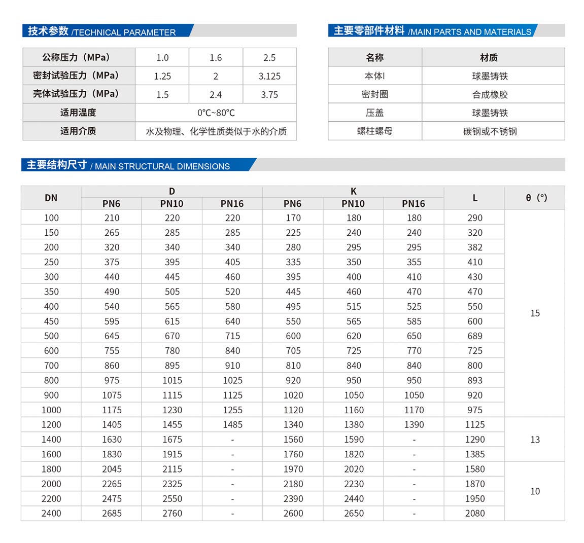 球形補償接頭主要適用于地面沉降大、震動大、地形復雜的管道連接。安裝在管道上后,球體可以以回轉中心在θ角范圍內自由轉動,來補償管道因地基沉降、熱脹冷縮引起的撓曲。具有補償量大,占據空間小,流體阻力小,安裝方便,綜合成本低等優(yōu)點。