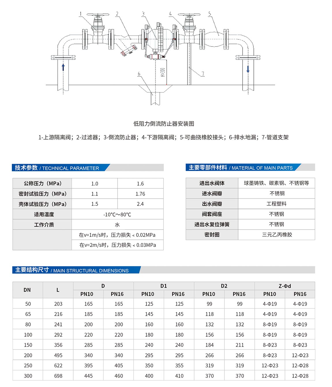 倒流防止器是由兩個相互獨(dú)立的止回閥和中間減壓腔內(nèi)一個獨(dú)立的水力差動式泄水閥構(gòu)成,三個內(nèi)部閥門除共用閥體外,無任何機(jī)械上的聯(lián)系,可靠性較高, 是一種具有限定管道中的壓力水只能單向流動的新型水力控制組合裝置,具有防止倒流污染和虹吸倒流污染的功能,此倒流防止器為市政管網(wǎng)的供水安全提供了合理的解決方案,倒流防止器可廣泛應(yīng)用于城鎮(zhèn)自來水管網(wǎng)、各種水系統(tǒng)及具有回流污染的場所。例如用于高層建筑的供水系統(tǒng)、生活飲用水與中水系統(tǒng)、消防供水系統(tǒng)、空調(diào)制水系統(tǒng)、噴灌灑水系統(tǒng)、工業(yè)取用水系統(tǒng)、醫(yī)療供水系統(tǒng)等,也可用于無負(fù)壓設(shè)備的配套安裝,防止不潔凈的水回流到主水管的現(xiàn)象發(fā)生,保證生活飲用水的衛(wèi)生與安全。