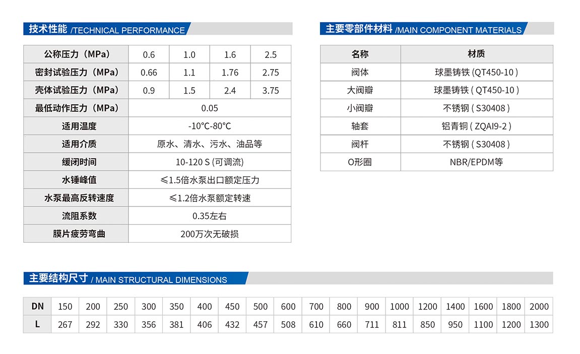 5、 安全可靠性高。具有速閉、緩閉以及吸能腔三種消除水錘措施,而且動作完全聯(lián)鎖,不會產(chǎn)生誤動作。