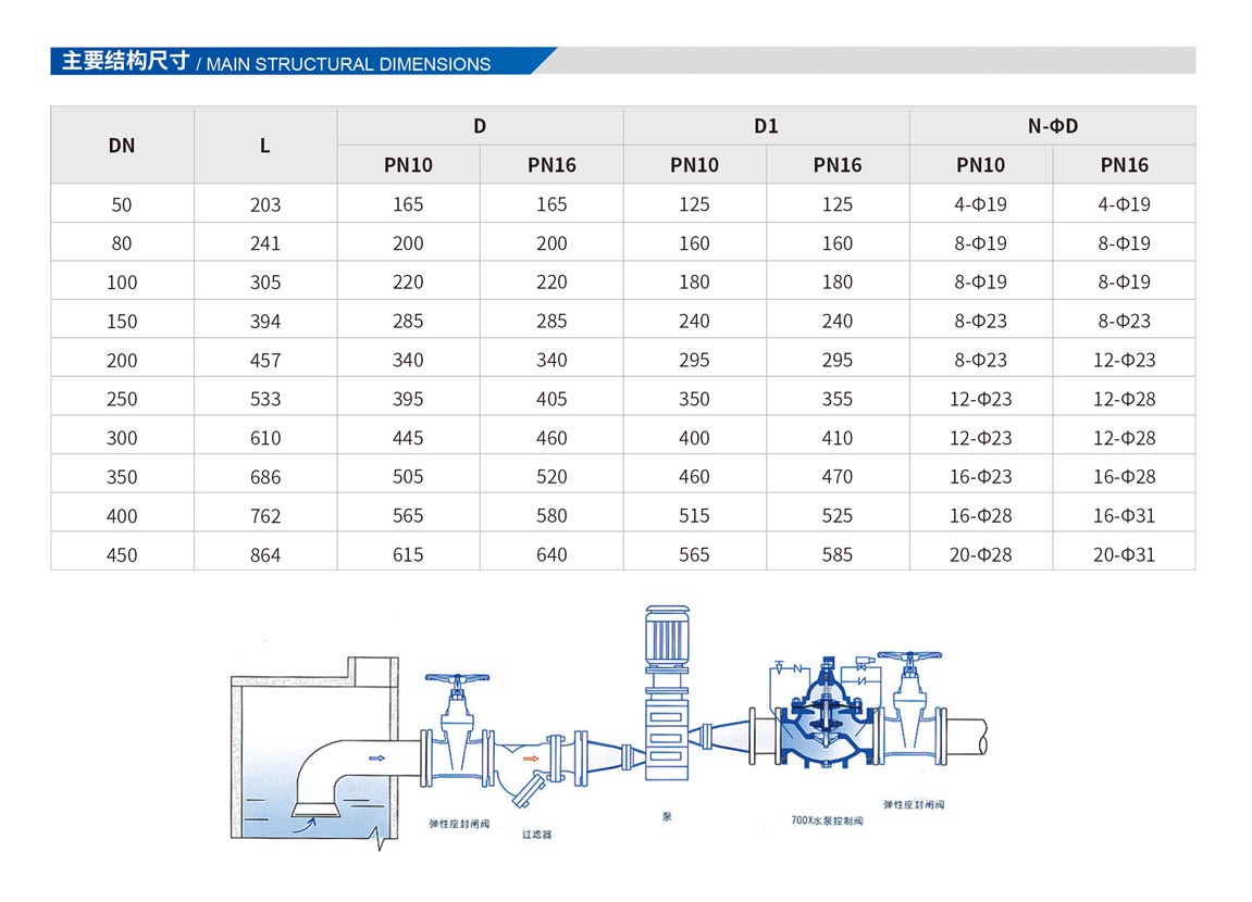 700X水泵控制閥,是一種安裝在高層建筑以及其他給水系統(tǒng)的水泵出口處,防止介質(zhì)倒流的逆止類閥門。當水泵即將停止供水前,閥門先行緩幔關(guān)閉90%左右,防止突然停泵而產(chǎn)生的水錘和水擊聲:當水泵完全停止后,閥門再完全關(guān)閉,防止泵出的水回流,有效地保護水泵,免受回流的沖擊而產(chǎn)生反轉(zhuǎn)。該產(chǎn)品是水泵出口必不可少的保護裝置。閥門呈流線型設(shè)計,通過電磁閥的導(dǎo)控實現(xiàn)準確的啟閉,使用安全可靠,有效地防止水錘和水擊聲,使用壽命長,安裝、維修方便。